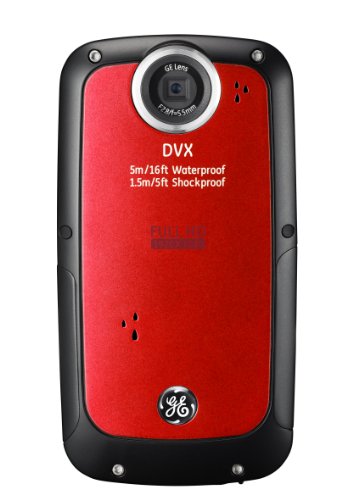 GE DVX Waterproof/Shockproof 1080P Pocket Video Camera (Velvet Red) with 2GB SD Card